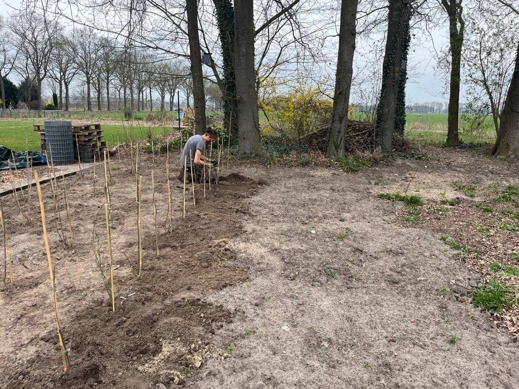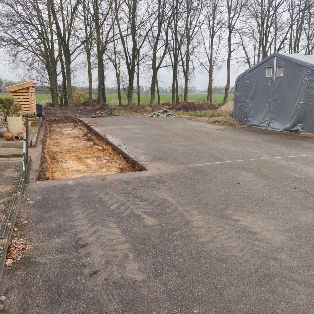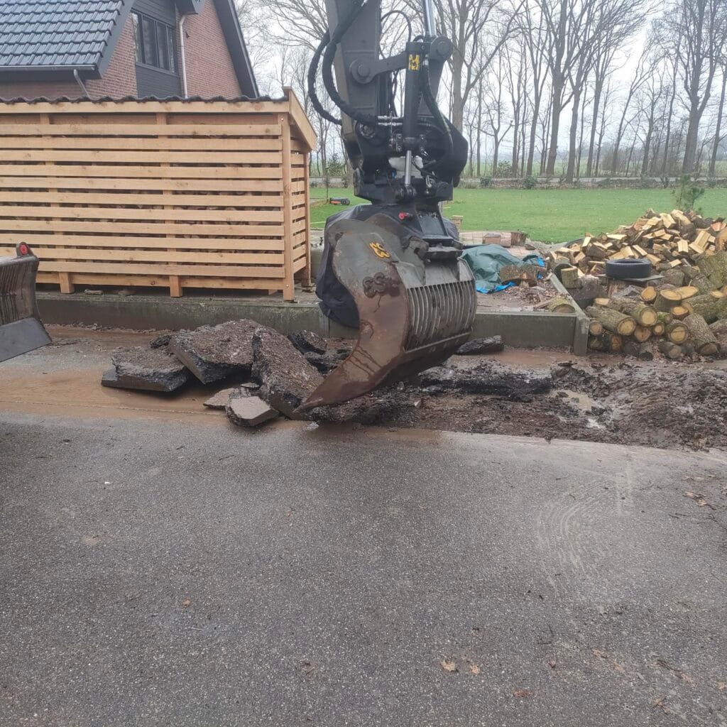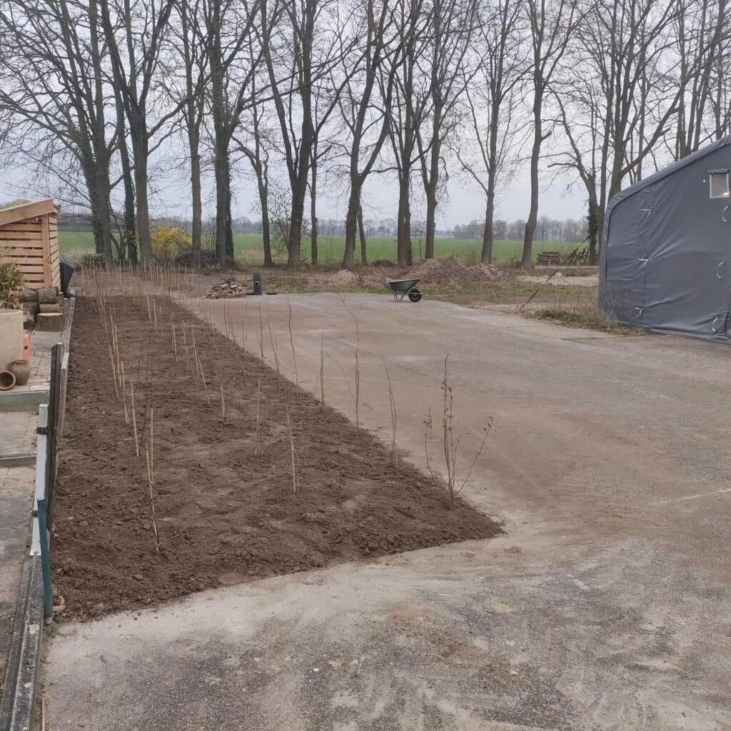Minder verharding! We hebben een stuk asfalt weg laten halen langs de perceelgrens zodat er een mooie heg kan groeien.