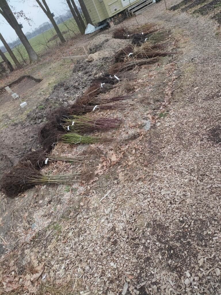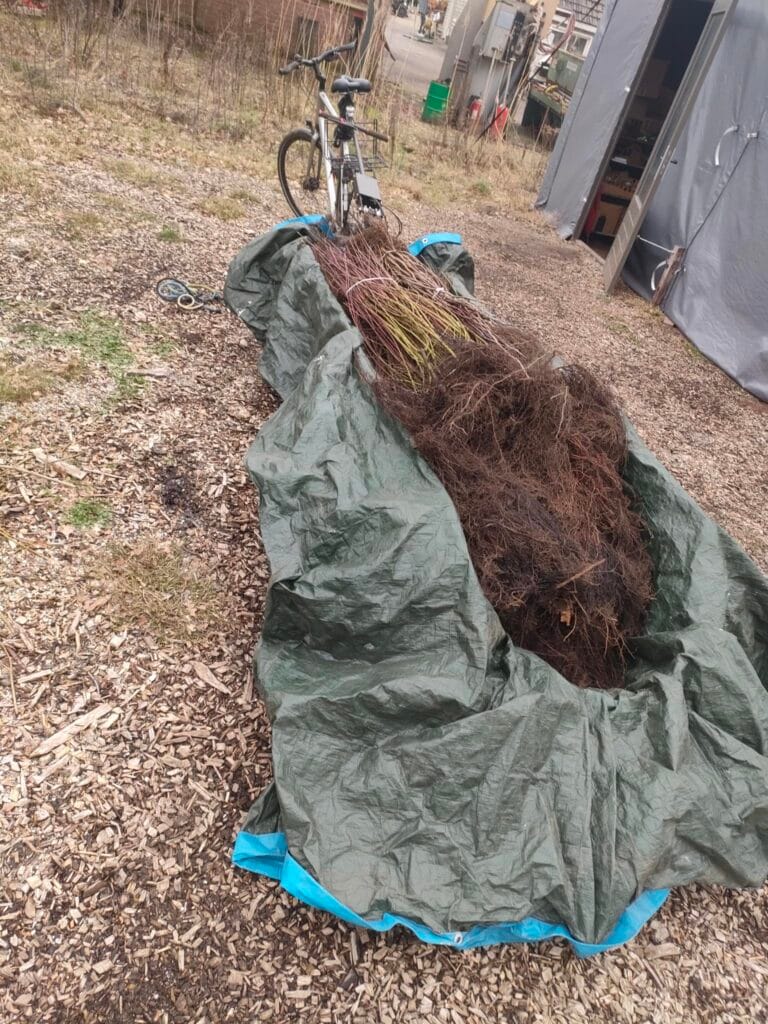We wilden graag veel bomen planten, vooral om de bodem te verbeteren en beschutting te creëren. De bomen maken de grond luchtig, ontwikkelen schimmelnetwerken en in de zomer kunnen we de bodem voeden met het snoeimateriaal. Maar ja, waar begin je? Wij wisten het ook niet zo goed en daarom zijn we extra trots en blij dat we nu, aan het einde van het plantseizoen, meer dan 2.000 bomen en struiken hebben geplant! Zowel gekocht, gekregen als gered (via meerbomen.nu). Niet alle bomen zullen voor altijd blijven, veel van wat we planten zijn wijkers, die op een dag plaats maken voor productieve soorten (blijvers).