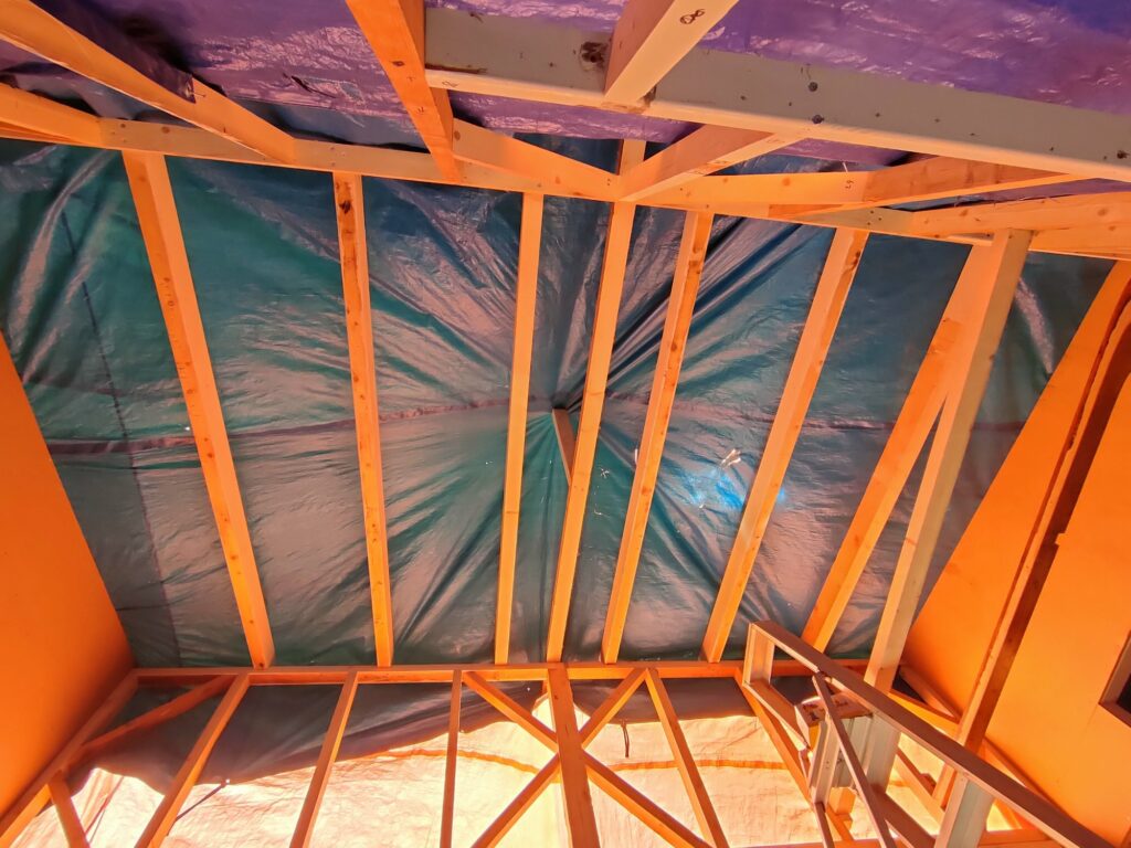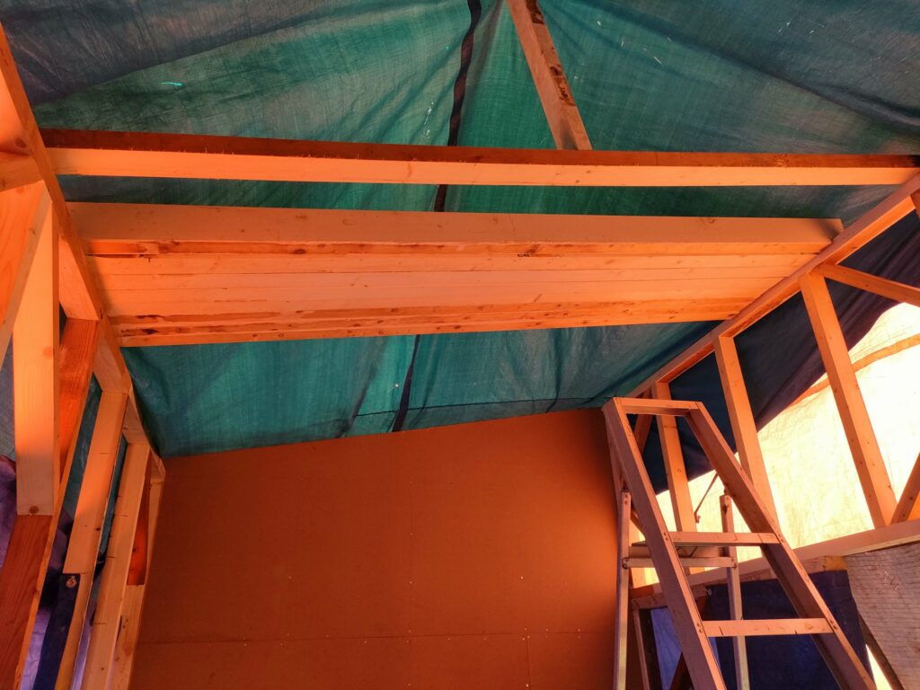 Dakbalken plaatsen.