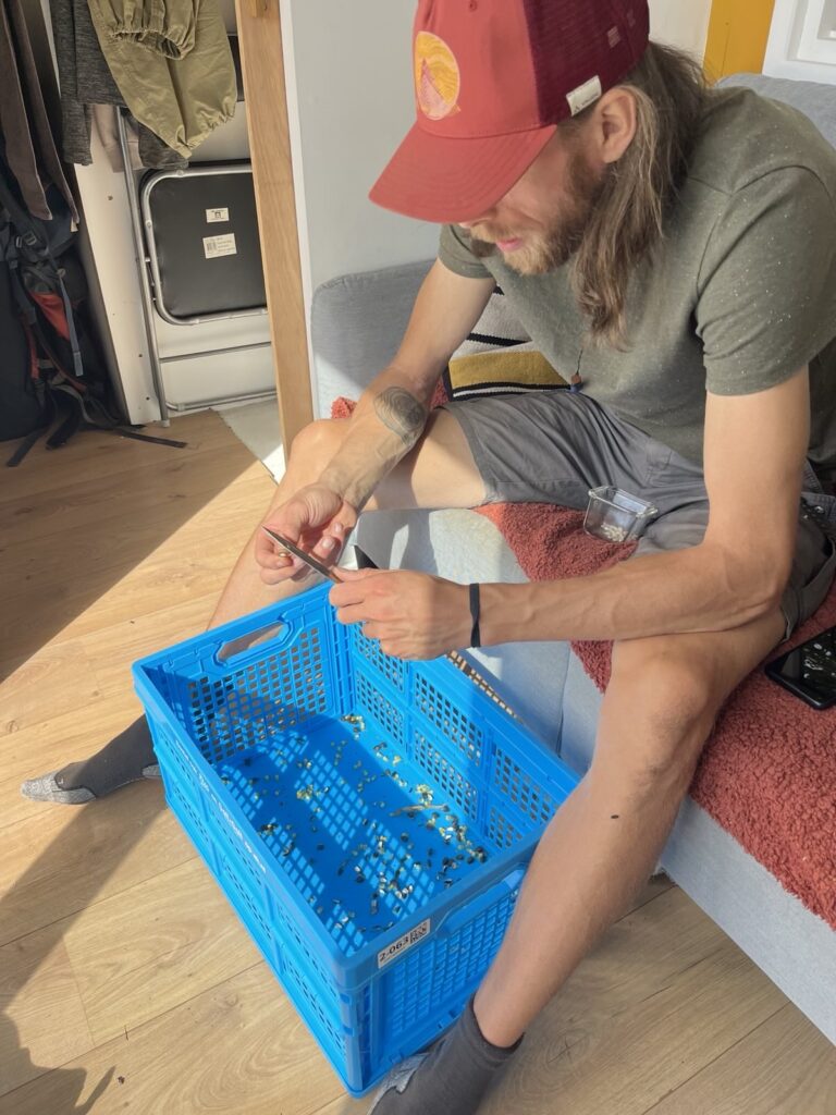 Zo zitten we dan, samen aan het werk in ons kantoortje/bouwkeet/huis.