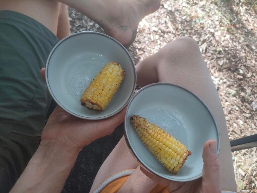 Oogst! We oogsten nog steeds mais en eten het vaak als snack.