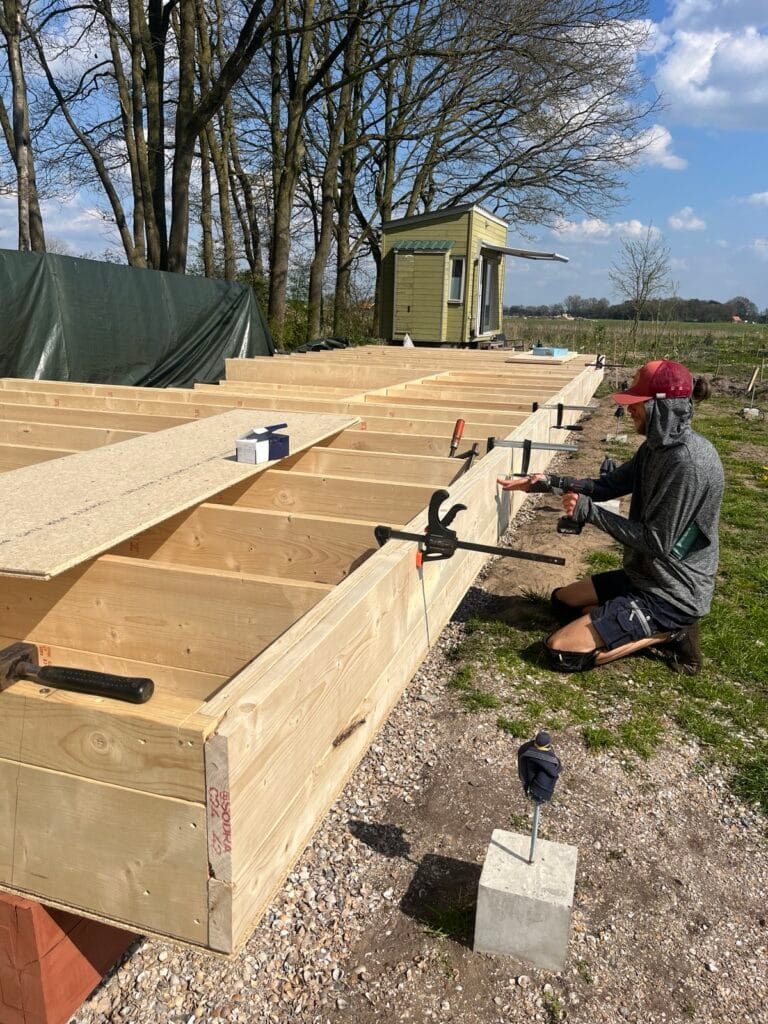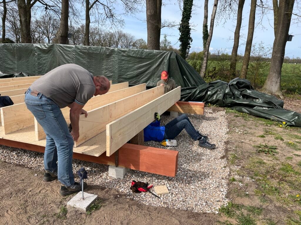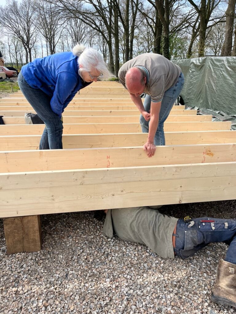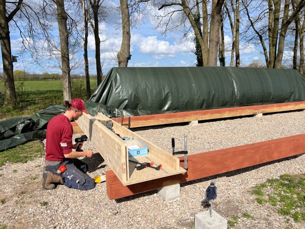 Vloerbalken samenstellen.